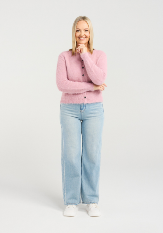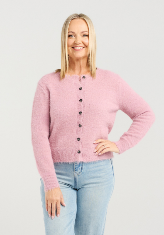 This super-soft knit features a button-down front and a classic round neckline for timeless appeal. Cozy and versatile, it's perfect for layering or wearing on its own.